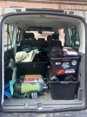 Nach dem wir in den kalten Monaten im Südstadtbad die ABC-Ausbildung und erste Erfahrungen mit dem Tauchgerät machen konnten, ging es am Wochenende vom 21-22.05.2022 an den Murner See, um unsere Freiwassertauchgänge zu machen. Bei schönstem Wetter ging es um 11 Uhr los. Alle CMAS* Schüler und Tauchlehrer rückten mit viel Gepäck an. Dieses musste erstmal vom Parkplatz zum See geschleppt werden. Jetzt weiß ich, was der Spruch „Ein Taucher taucht sich nicht tot – er schleppt sich tot“ bedeutet. Tauchflaschen, Tarierwesten, Neoprenanzüge, Atemregler, Verpflegung usw., aber jeder hat fleißig mitgeholfen und unser Tauchlager war schnell eingerichtet.