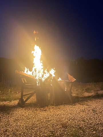 Bei sonnigem und warmem Wetter trafen wir uns auf dem Gelände des 1. MYC Nürnberg, um gemeinsam bei Essen und Getränken gemütlich zusammenzusitzen. Mit der Dunkelheit wurde ein Feuer angeschürrt, dass später mit etwas Nachhilfe richtig gut brannte.
