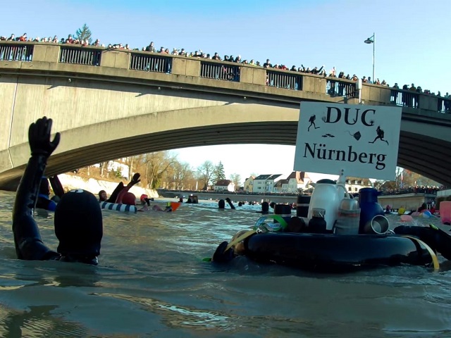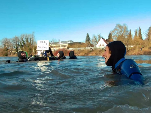 Zwei Tage vorher mussten sich die Neuburger Veranstalter wegen der hohen Fließgeschwindigkeit zu einer abgewandelten Variante für die Schwimmer entscheiden. Die Strecke wurde verkürzt und ohne Großgeräte geschwommen. Zugelassen waren lediglich Geräte, die von den Schwimmern selbst aus dem Wasser gebracht werden konnten. Alles besser als Absagen! Nur keiner von uns DUClern hatte das mitbekommen! So standen wir mit unserem DUC-Mobil an der Staustufe vor einer verschlossenen Schranke. Weit und breit keine Feuerwehr oder Wasserwacht, die sonst zu dieser frühen Stunde bereits mit den Vorbereitungen beschäftigt waren. Zum Glück brachte der Anruf unserer Vereinskollegen, die sich um die Anmeldung vor Ort kümmerten, Klarheit.